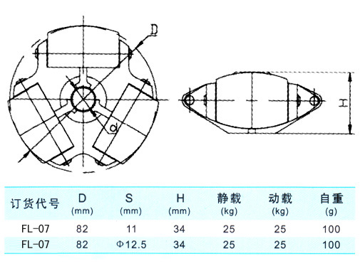 型號:FL-02 材質:608ZZ+POM或ABS 載荷:30kg 重量:35g