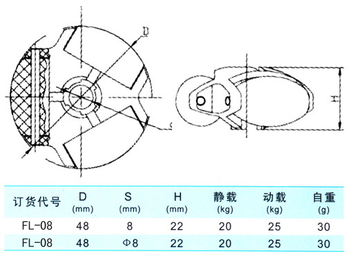 型號:FL-08 材質:增強尼龍 載荷:25kg 重量:30g
