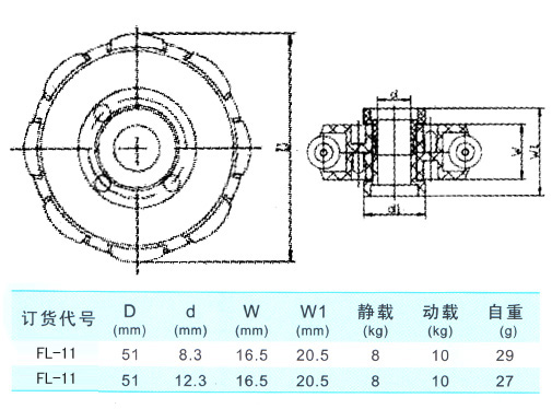 型號:FL-01 材質:608ZZ+POM或ABS 載荷:30kg 重量:35g